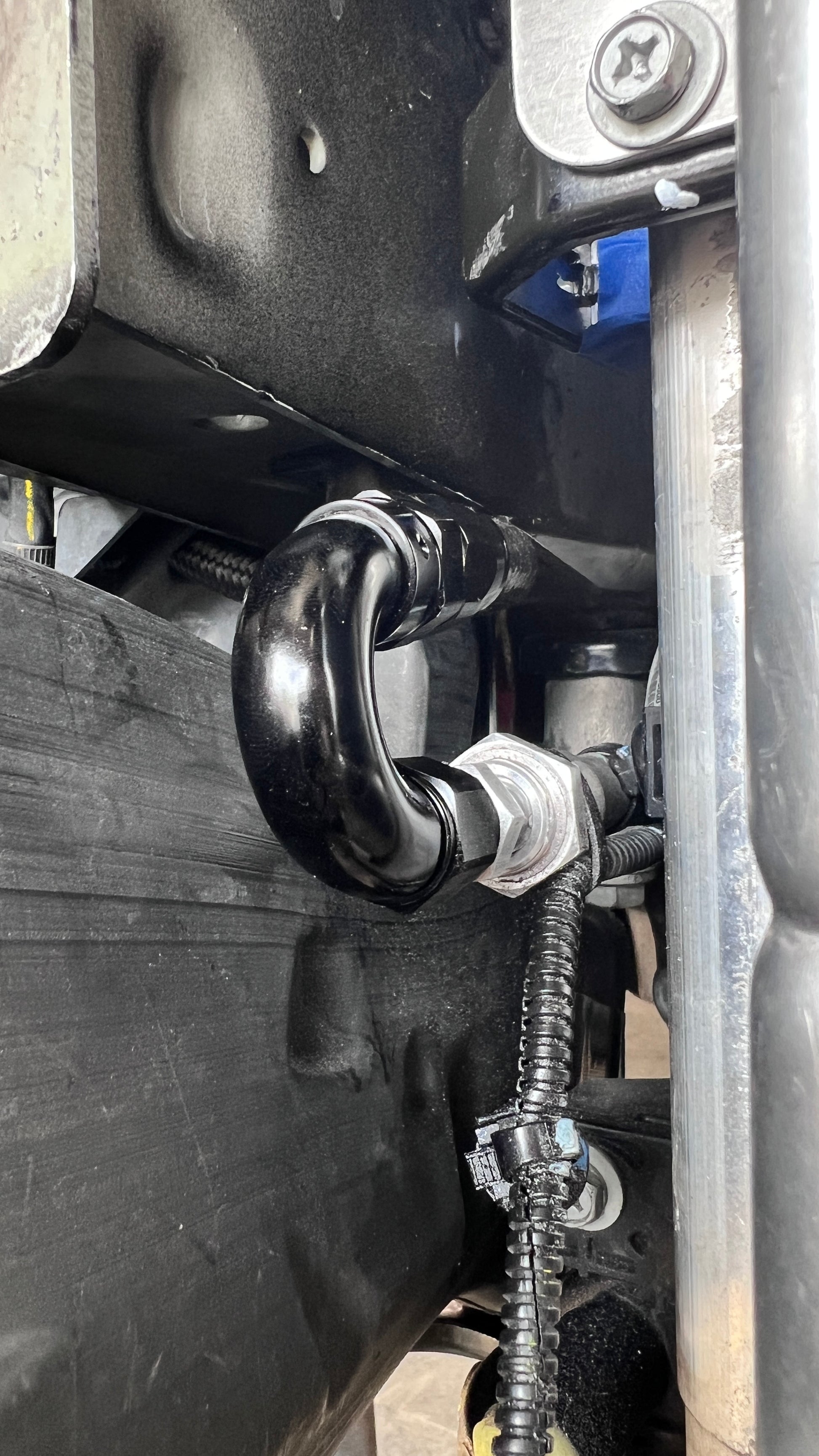 The OEM transmission cooling circuit is absurd at best! Try to follow this operational theory from the factory... the ATF leaves the transmission heading forward, passing to the passenger side of the car in a steel tube under the exhaust to the front of the engine. From here, it crosses over once more to the driver's side where it enters the top of the Engine Cooling Radiator to flow through an internal heat exchanger where it exits the bottom, then enters the driver's side of the flat Auxiliary Transmission Heat Exchanger (AuxTransHX) where the fluid travels to the passenger side. The transmission fluid now makes a complete journey alongside the full exhaust system in the tunnel to the eLSD where it goes through another heat exchanger in an effort to "cool" the differential fluid before moving forward again, passing the entire exhaust system within an inch or so, until it finally arrives back at the transmission!!