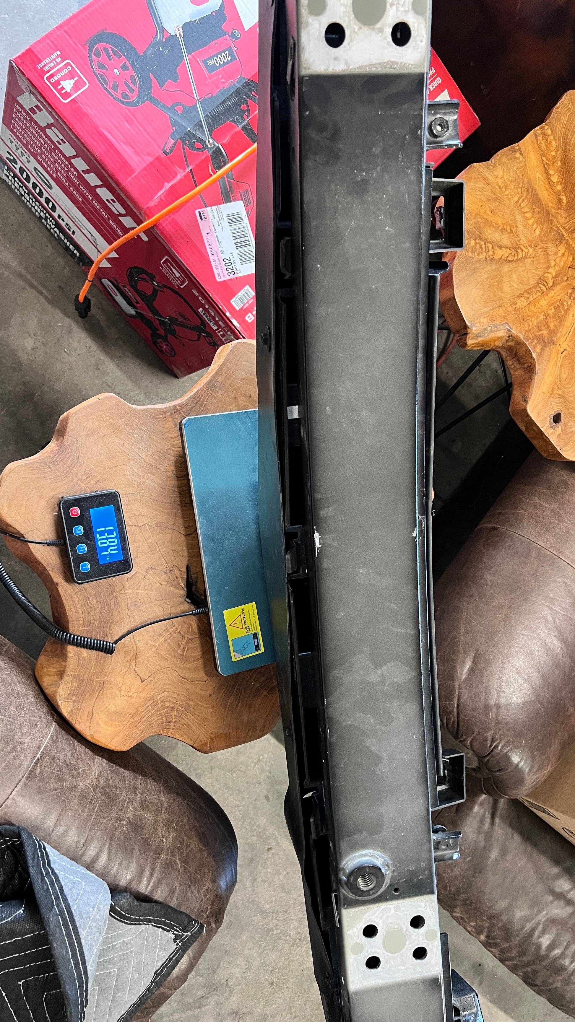 PatriotMS Oil Cooler Support Bracket | Impact bar delete: This bar removes the impact bar and allows for Porsche RSR Air-to-Oil cooler & relocation of the Transmission Aux heat exchanger. The photos below show the OEM Crash bar with pad weight and the reduction by over HALF the weight with our custom support bar. This system will also support front splitter mounts as well as flat closeout of the transmission heat exchanger to eliminate additional unwanted airflow under the front of the car which affects cooling and handling!